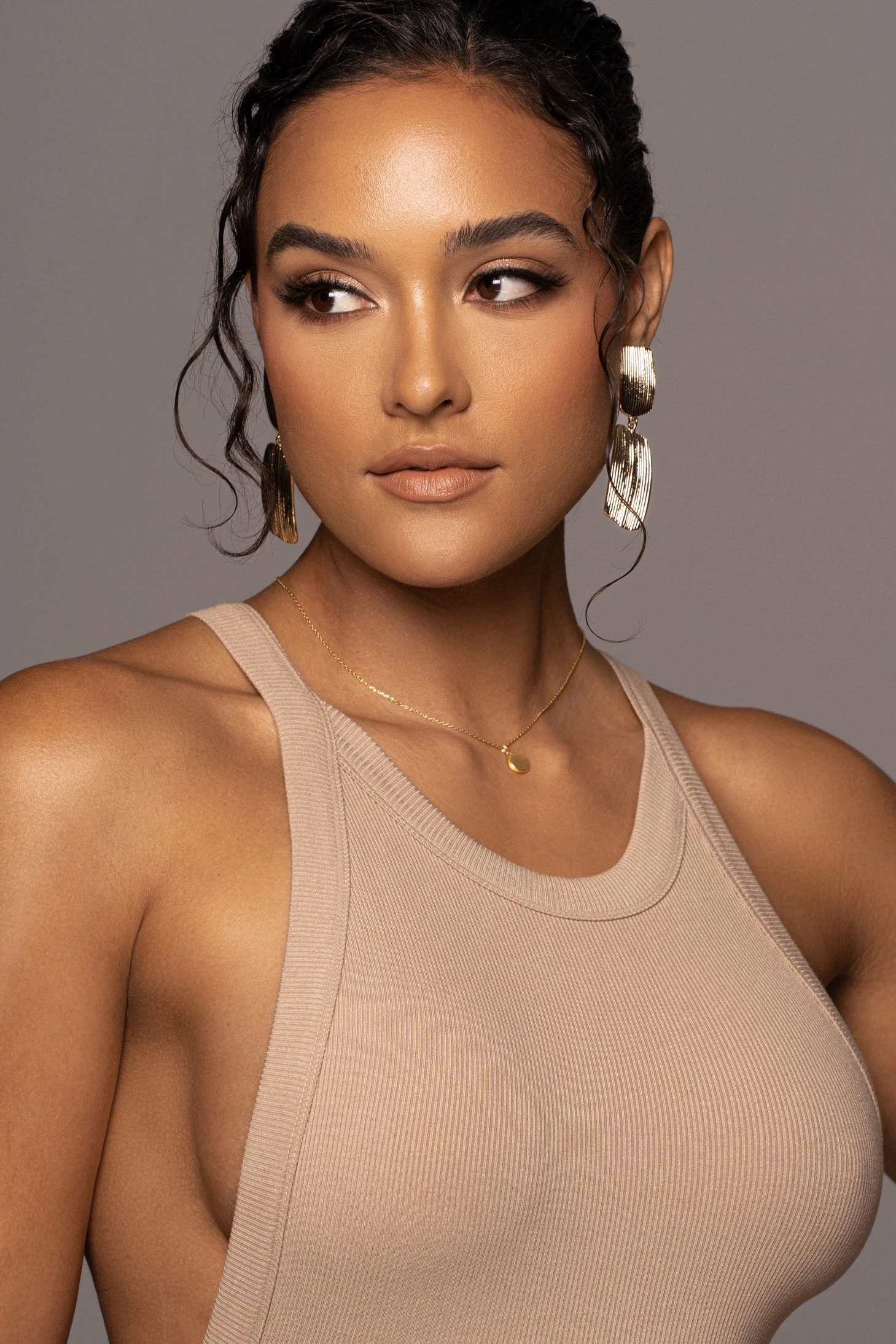 EXCLUSIVELY DESIGNED BY US FOR YOU.ย Our BEIGE SOUL SEARCHING DRESS is anย effortless classic. This essential midi dress is designed in a fully ribbed material and features a round neckline with non-adjustable tank shoulder straps that highlight a stylish cutout back. Stretchy.