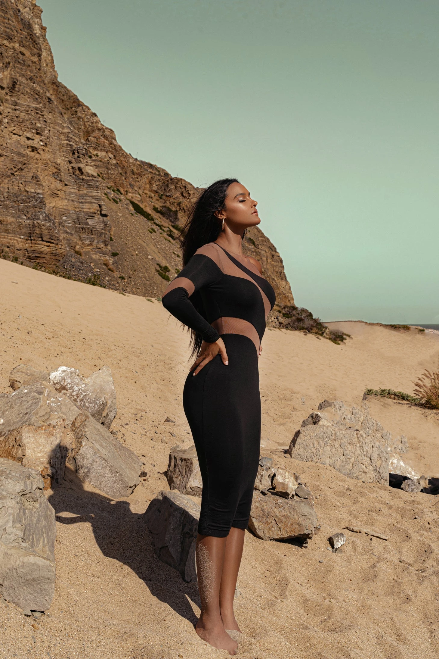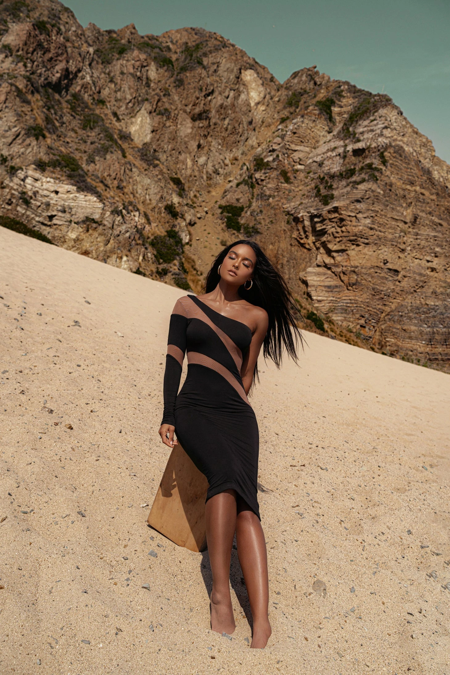 They’ll only have eyes for you when wearing the Black Eyes For You Midi Dress. Designed in a captivating mix ofย mesh and soft jersey, this classy one shoulder midi dress featuresย meshย panels in a modern asymmetrical pattern going across the front/back top waist. Stretchy. Double lined.