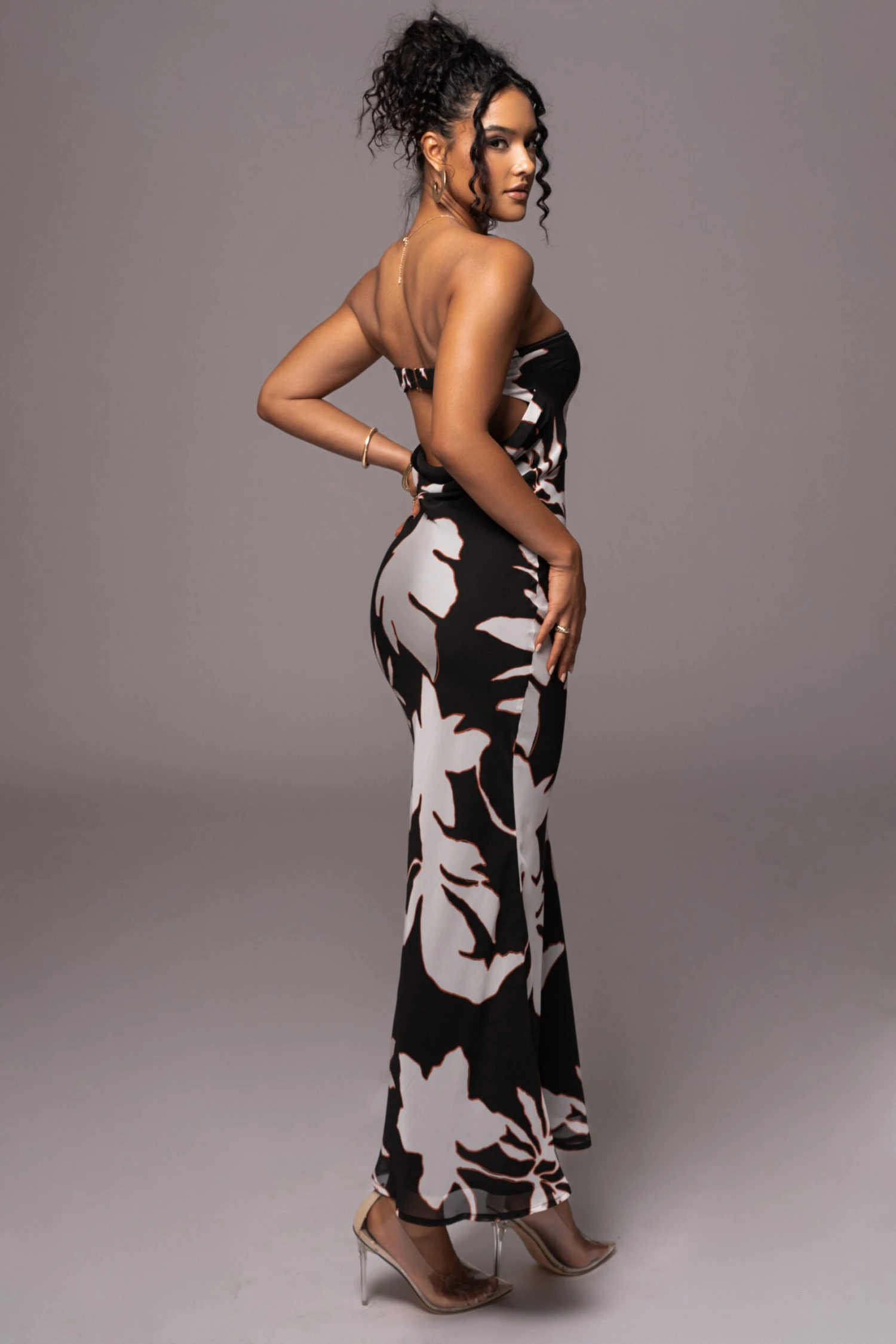 Radiate on all angles with our new Ivory Break Free Strapless Maxi Dress. This beautiful maxi design features a strapless neckline with a stylish hook back closure and a flattering silhouette that falls effortlessly around your curves. Carefully constructed in a luxurious chiffon fabric graced with a dreamy and everlasting floral pattern. Lined interior. No stretch.